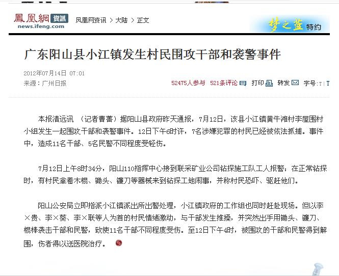 » 广东阳山县小江镇发生村民围攻干部和袭警事件
