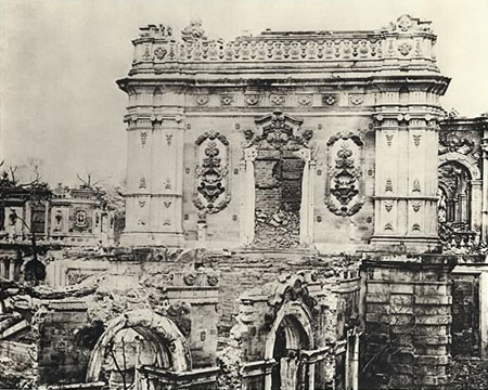 1875年圆明园废墟。很多人可能不知道,除了被抢的珍宝,圆明园毁在中国人手里的部分比毁在外国人手里得多