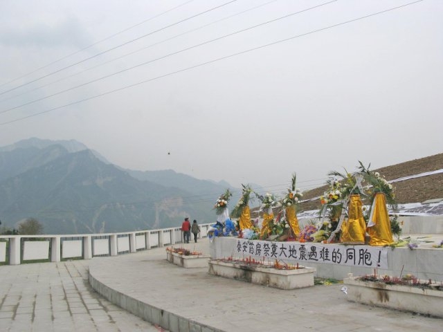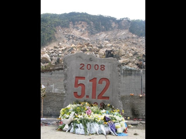在遇难者集中的地方,当局采取了集体掩埋的方式,埋葬地点被人称为“万人坑”。北川老县城就有这样一个万人坑,据说埋有数千具遗体。5/12地震纪念碑就竖立在万人坑前。