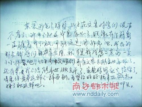 记者看到,该遗书的全文是:“亲爱的爸爸妈妈,儿子在这里对您们说声不孝了。我也不知道我是怎么了,好像有个阴影一直缠着我不放,可能这是我的命吧。我存的那点钱您们拿去用,就当是我对您二老的一点小小补偿吧,儿子亏欠您的养育之恩只能来世再报了。还有哥,我们只能来世做兄弟了,爸爸妈妈就交给你了。请原谅弟弟这样不辞而别。希望你好好把事业做大。好了就这样吧。不孝儿子,在此对父母叩头。”