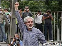 在得到前总统、奉行较温和外交政策的实用主义者拉夫桑贾尼(Akbar Hashemi Rafsanjani)的支持后,穆萨维警告政府,如果目前的僵局得不到妥善解决,政府将面临一场“合法性危机”。他公开谴责精神领袖哈梅内伊(Ayatollah Ali Khamenei),偏袒选举获胜方--现任总统内贾德(Mahmoud Ahmadinejad)。