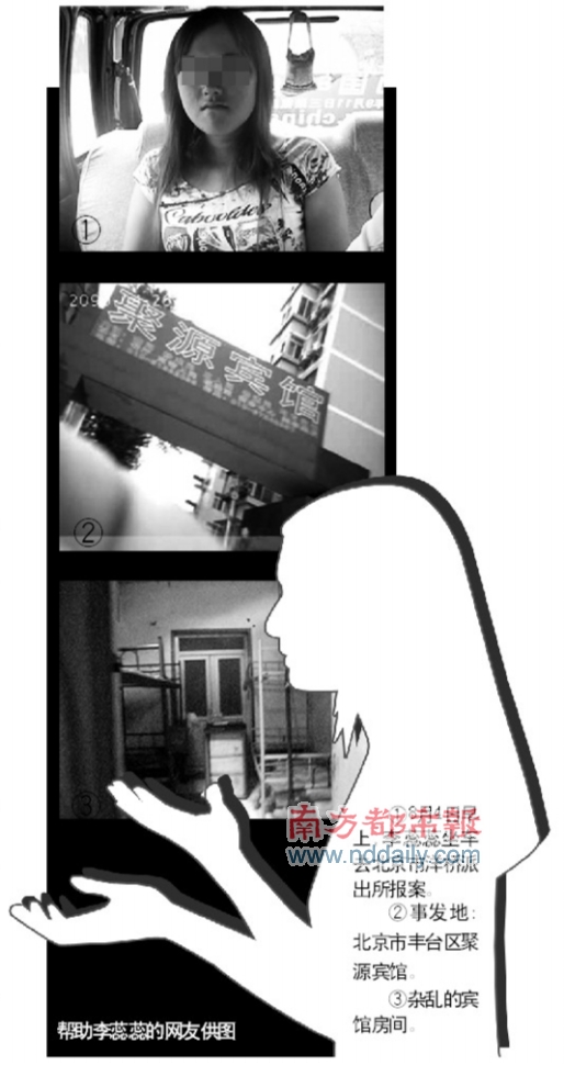 李蕊蕊:从来没有去过,我也不知道国家信访局在哪里,到了北京就转着问,有两三天都乱转,晚上坐在路灯下面,只要有灯光,我就不怕。在路边坐一会,迷糊睡一会,一会又醒了。我想着告完状,把材料交到国家信访局就回家来,就没有带什么东西,手机都没拿,就带了1300块钱。带我去那个黑宾馆的时候,钱已经不知道什么时候弄丢了,不知道被别人拿走了还是掉了。
