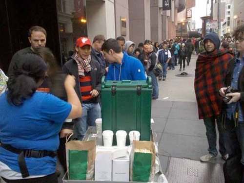 iPhone迷们提前排队彻夜等候在各地的苹果专卖店外