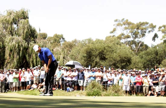去年甚至是伍兹星期二练习,也吸引到几千名观众观看。那个时候电视台的航拍飞机在天上盘旋,以获取最好的拍摄角度。可是这一次,伍兹星期一先要到泰国去打一场逐洞赛。接下来星期二晚上,他将出席墨尔本的盛大晚宴,参加星期三的职业/业余配对赛。