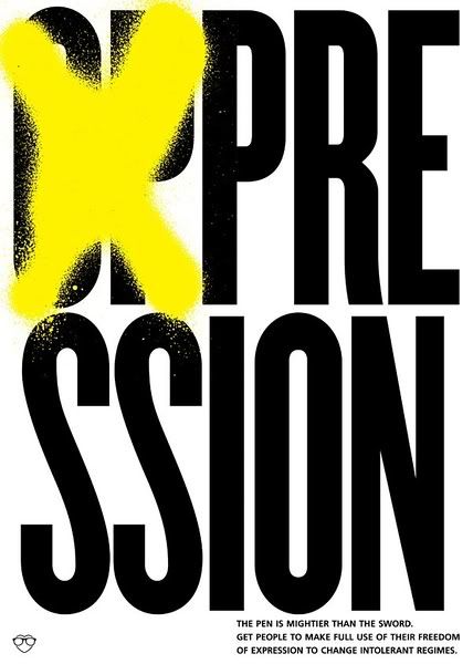 黑体字是Oppression为压迫现在用黄漆在OP上写了一个X变成Xpression即expression言论,意为压迫言论