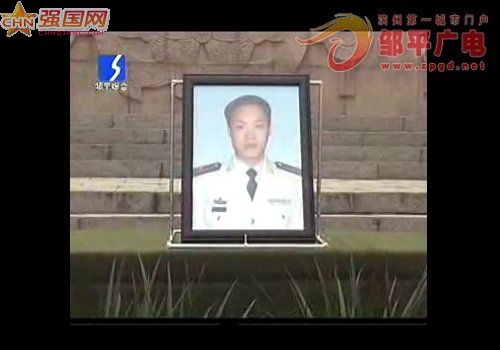 视频截图:身穿海军少校制服的明健烈士遗照。