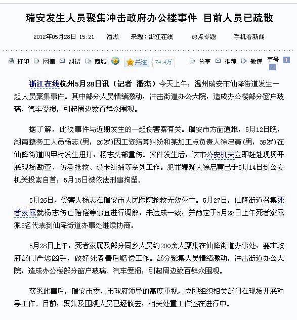 » 瑞安发生人员聚集冲击政府办公楼事件