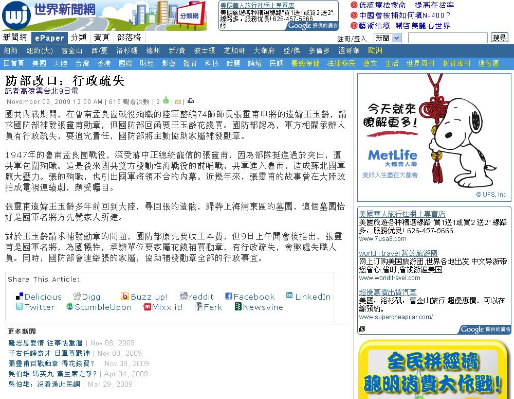 作者: dp_2006 时间: 2009-11-9 23:24 标题: 张灵甫遗孀申请补发抗日勋章 军方要求花钱买回(图)