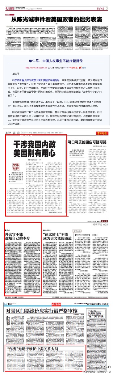 白宮官員前日首次在公開場合評論陳光誠事件,並間接證實陳在美國保護之下。總統奧巴馬的首席反恐顧問布瑞南(John Brennan)說,奧巴馬正嘗試既保持美國對保護人權、言論自由的承諾,又可繼續維繫與重要國家的關係。有美國輿論形容,今次事件已成為自1989年「六四」事件後對中美關係的最大考驗,挑戰奧巴馬的外交智慧。篤定成為共和黨總統候選人的羅姆尼(Mitt Romney)公開呼籲奧巴馬政府要保護好陳光誠。