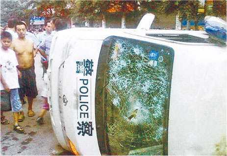 下午4点过开始的大概有1万多人在大街上,看见穿制服的执法人员就打,警车遭整翻了两辆,下午进了派出所内部查看,一排的人墙堵门口。