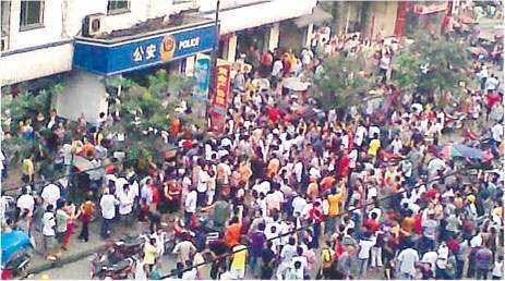 现在公安局遭堵死了,警察也和百姓对打过了,抓了几个小孩子进去。