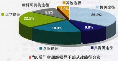 总之,“60后”省部级领导干部的多途径成长道路或者说是多途径选拔培养渠道,十分有利于保持中央和省两级政府高层领导活力,同时有利于优化高层领导班子结构,这一点与西方国家政务官多途径选拔渠道基本上是一致的。