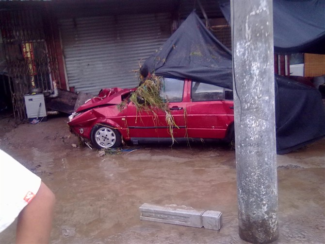 村里基本上没什么事,就是地势低的家庭水到窗台了,村委会组织党员群众积极疏散了,路上的回家的车就惨了,好多车被水冲走了