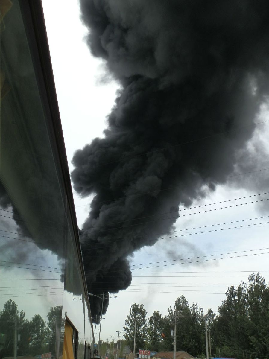 概十辆车了,还有的泡水里呢,中午,有汽油着了,黑烟特别多