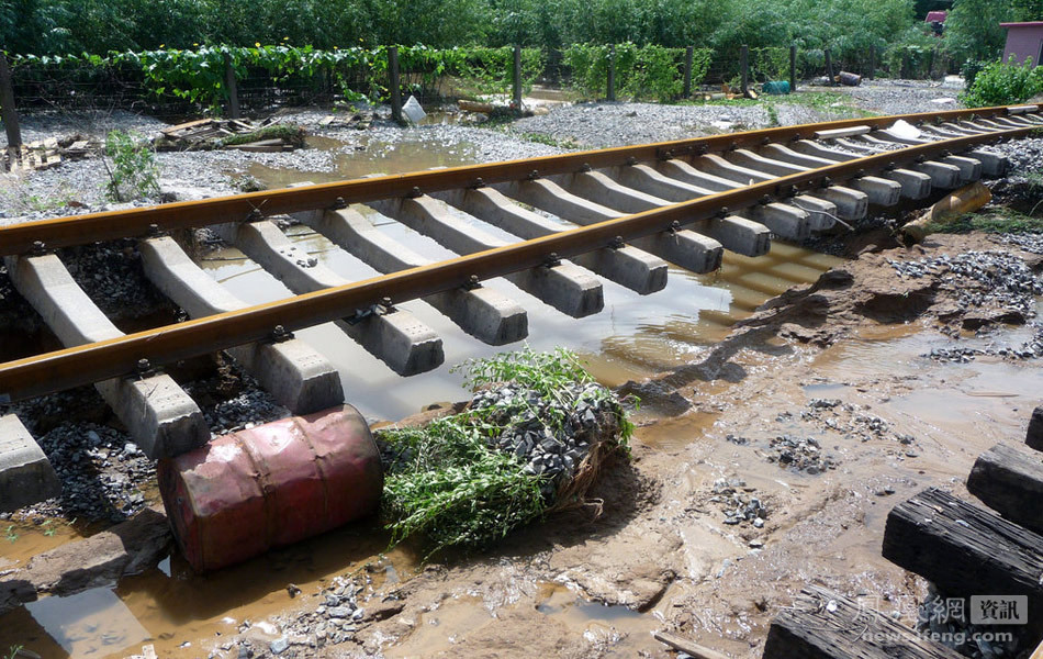 周口店大韩继铁道口 冲走一辆出租车 两辆三轮 只找到两具尸体 具体死多少没法知道