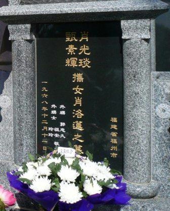 这墓碑是亲人近年为萧光琰一家新立的。由于骨灰不知所踪,仅仅将萧光琰的一件衬衫葬在墓内。