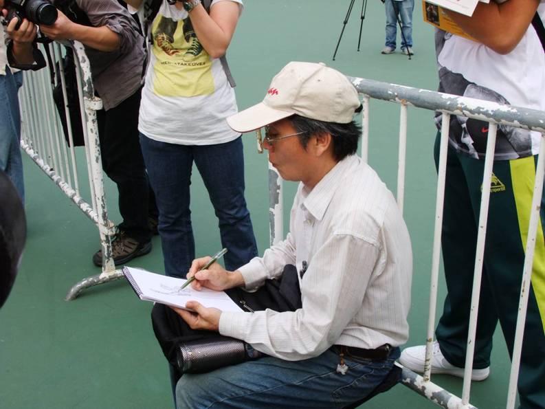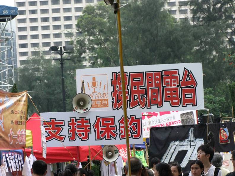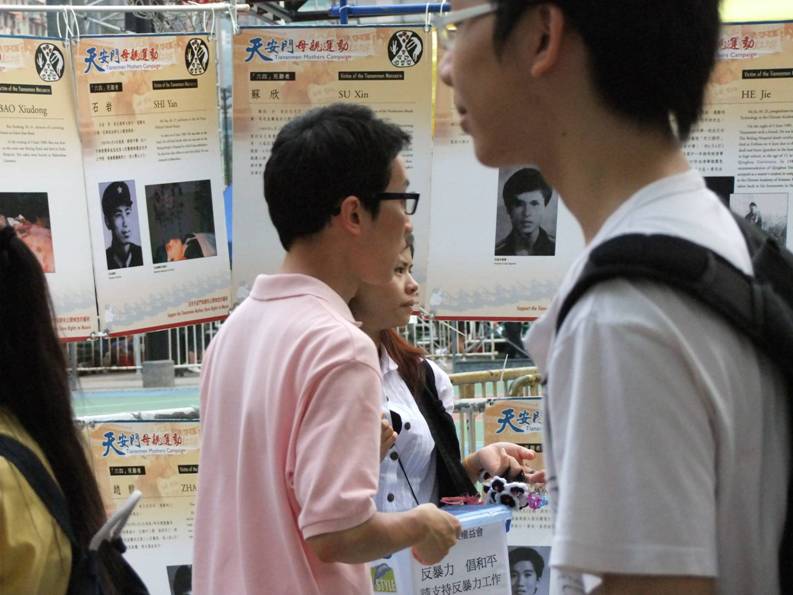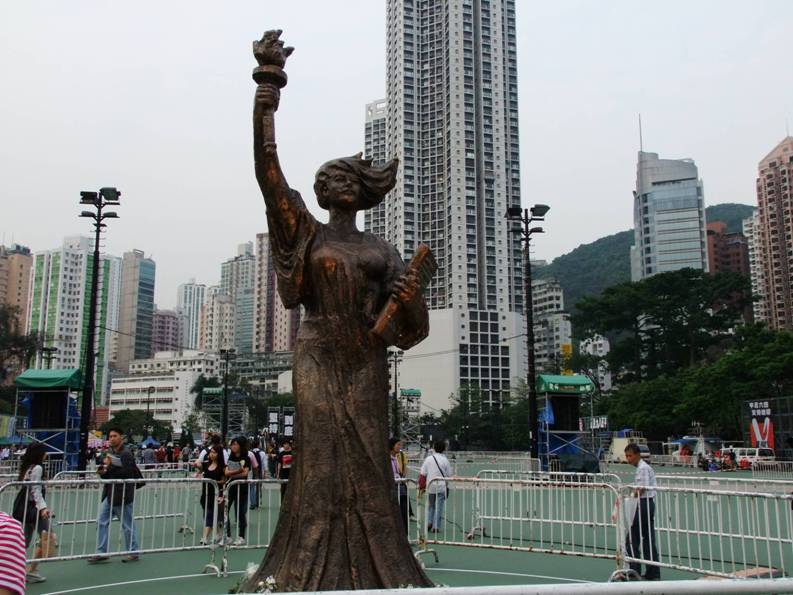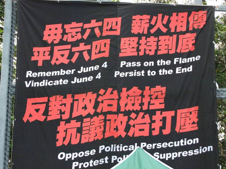 6月4日,我坐地鐵到天后站下車,五點左右,就到達維園了!但是很多的攤位已經佈置完畢,也有相當一部分工作人員及記者,做好準備工作了!