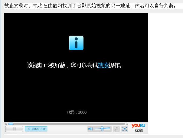 截止发稿时,笔者在优酷网找到了合影原始视频的另一地址,读者可以自行判断: