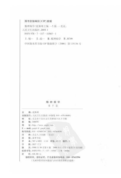 [精神病学(第五版)].沈渔邨.扫描版.pdf 详情 363.4MB