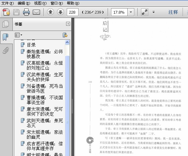 中国几千年的帝制电,让六百多个帝王名列其中。但在这六百多个帝王中,真正留下遗诏的少之又少,或者说,经过深思熟虑留下遗诏,而遗诏对后世有大影响的帝王不超过三十位这除了许多遗诏被舌人出于某种目的篡改外,还有就是,许多帝王往往死于非命,或者她们只是庸碌之辈,考虑不了那么多,所以,他们的遗嘱不过是临死前贪恋人间的痛词。