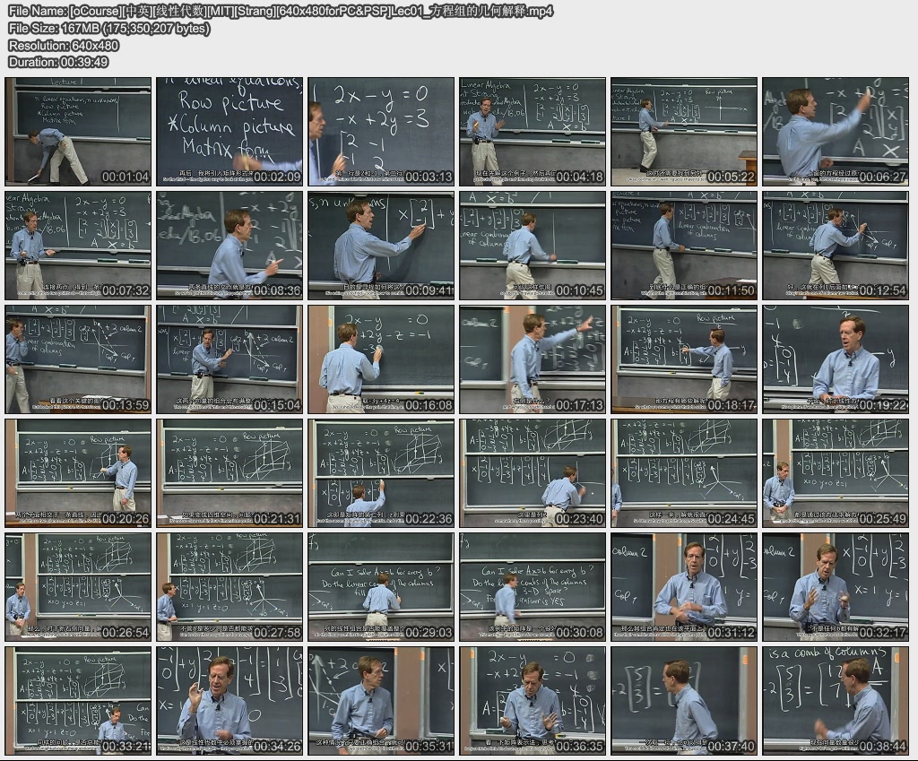 [oCourse][中英][线性代数][MIT][Strang][640x480forPC&