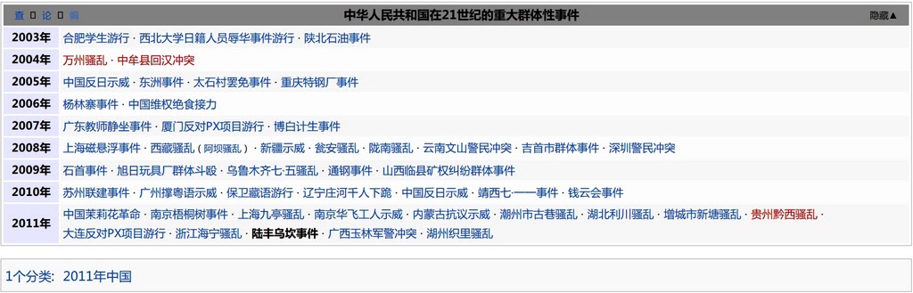 2011年中国十大群体抗暴事件