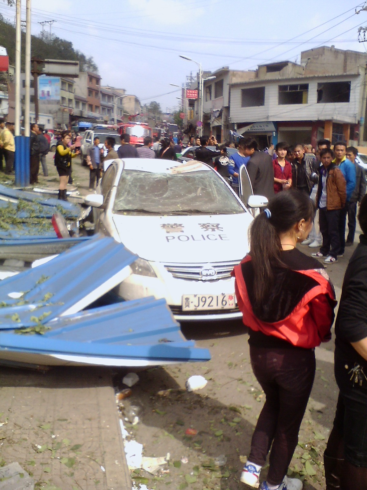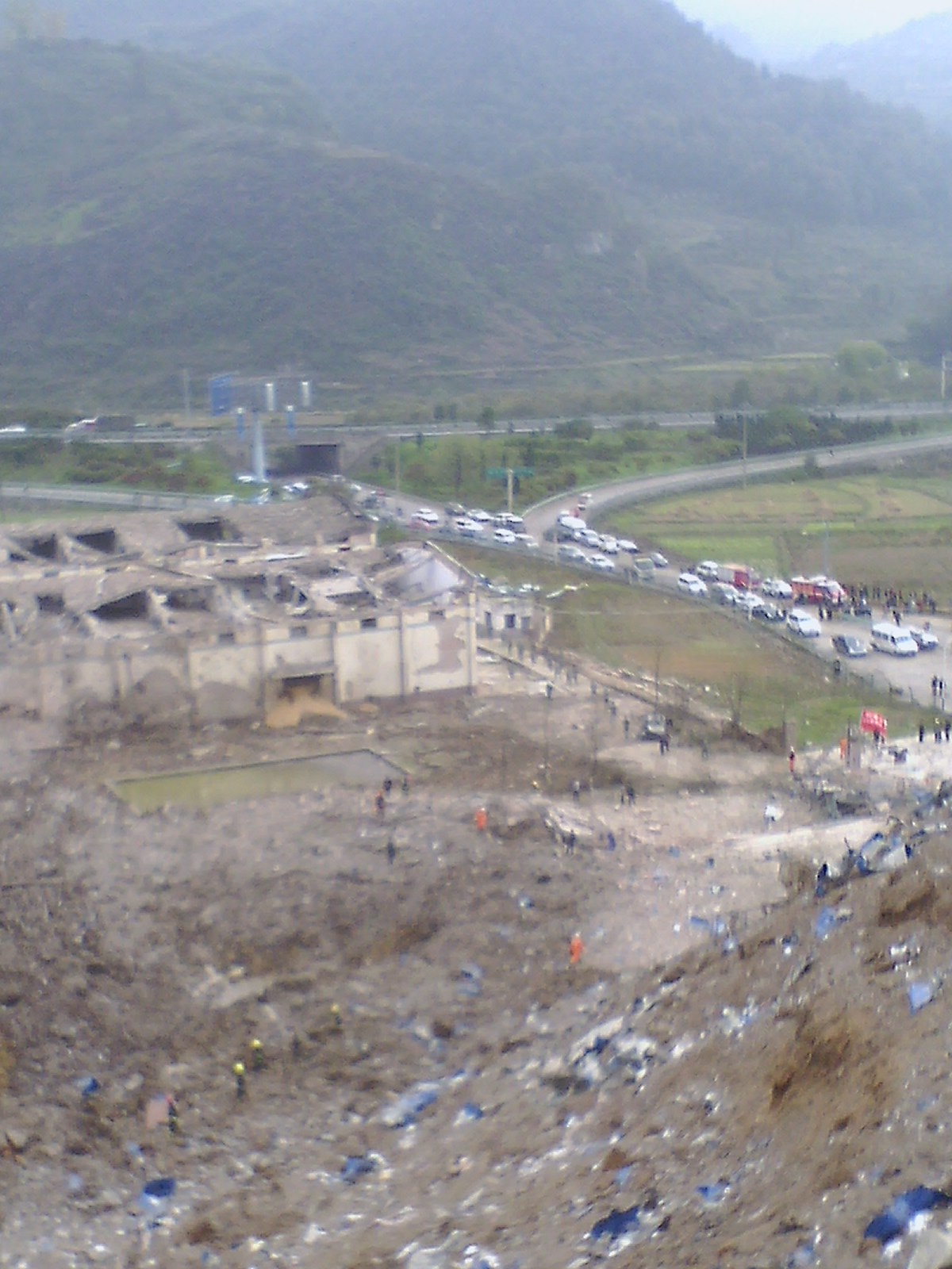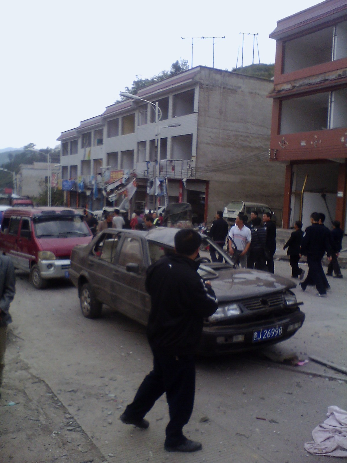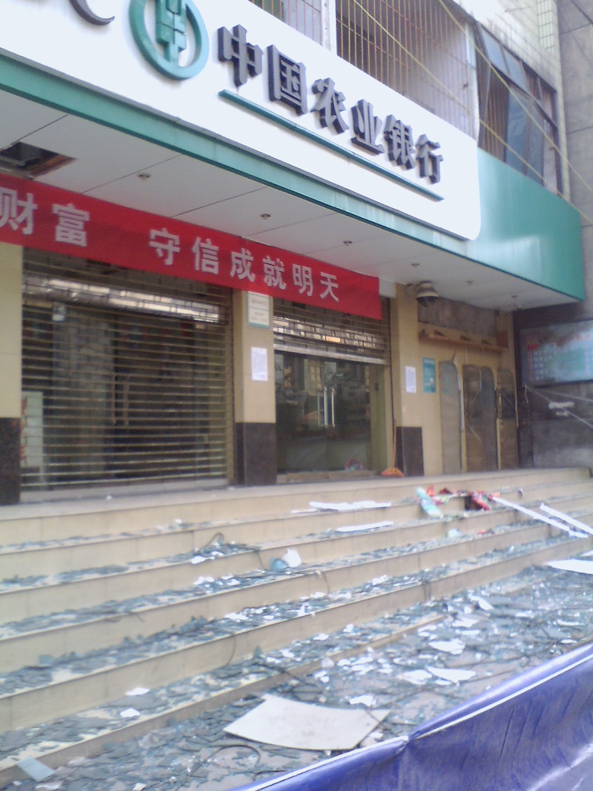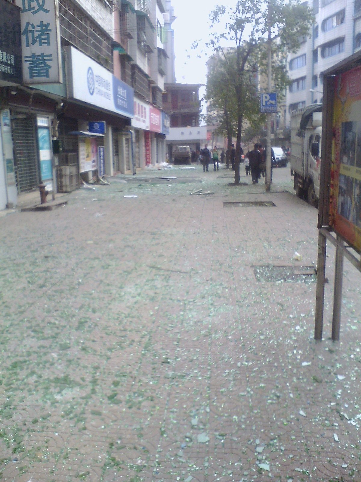 走到大街上后 一片狼藉 满大街都是玻璃碎片 这是距离爆炸地一公里左右的地方