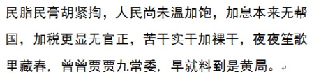 cctv是洗脑的, 统计局是造数的, 教育部是思想禁锢的, 中石油化是劫路的, 铁道部是给北京大佬攒小金库的, 发改委是杀贫济富的;审计局是友情客串的, 海关总署是赃物变现的,宣传部是阻止异见的, 信访办是诈骗的, 公安是阻断的, 武警是打击一片的, 法院是送你精神病院的。