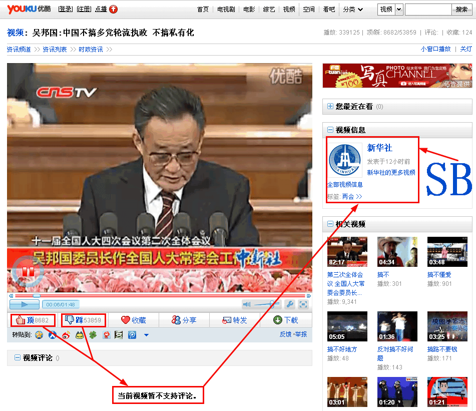 下午2点多出门前顶是8000多,踩是7000多,当时我就觉得不对劲,当时还有评论,都是哈哈哈,哈哈,我对评论是五毛的杰作表示肯定,出去回来再看这个视频顶是8000没有变化,踩是5万多,这个比较可信,但评论已经关闭