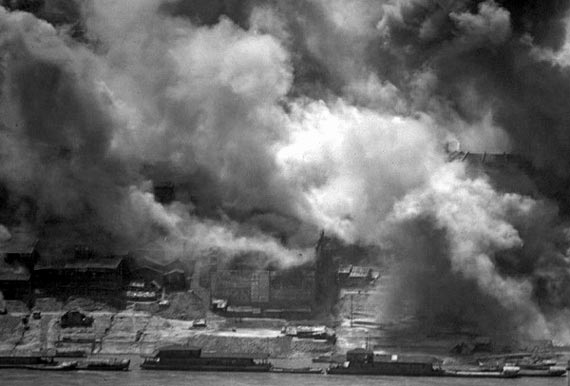 资料图:日军轰炸重庆朝天门码头。