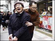 一名2月20日在上海市中心参加“茉莉花集会”的男子被身份不明者带走。