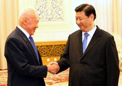 “在我与他会面的一小时中,我发现他是个有想法的人,生命中经历了很多考验和磨难。你知道他有8年时间下放到农村,在福建18年后才到浙江,然后去上海。所以我会把他归在曼德拉这一级的人物──有强大的感情自制力,不会让个人的不幸和苦难影响其判断。”——新加坡资政李光耀谈习近平