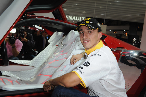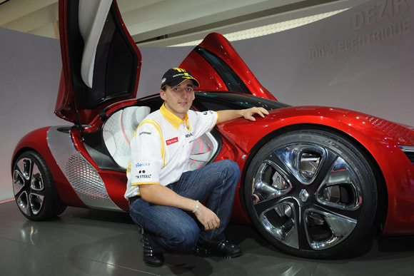 罗伯特-库比卡与雷诺电动概念车 Dezir合影。