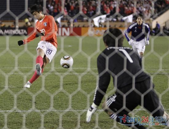 图:韩国男足反超日本后,球员集体向教练许丁茂下跪