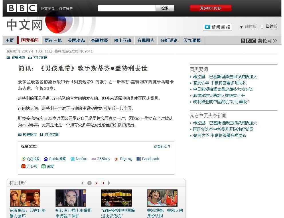斯蒂芬•盖特利(Stephen Gately)在西班牙马略卡度假时突然去世,年仅33岁。