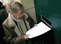 今年七十三岁的捷克前总统瓦茨拉夫•哈维尔周三(1月6日)前往中国驻布拉格大使馆,递交一封致中国当局、抗议监禁刘晓波的信函,遭到拒绝后,哈维尔只好将信件“投递”到垃圾桶。