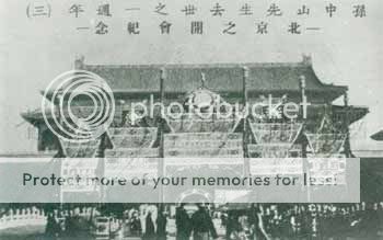 为纪念孙中山先生逝世一周年,天安门前设立的彩坊