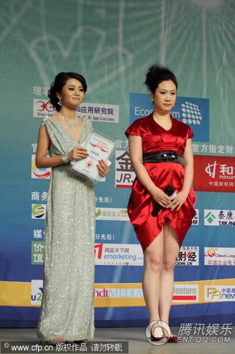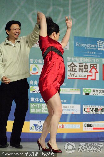 网络红人芙蓉姐姐获得此次“2009年中国互联网经济领袖论坛”个人网站奖项。这是她首次获得互联网个人奖项。她发表主题演讲,声称自己是中国最“风骚”的女人。一身红裙的她还现场起舞大秀身段。