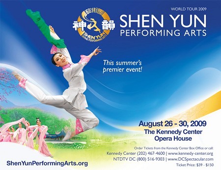 传递8月26日至30日即将在肯尼中心上演6场神韵晚会消息的海报在大华府地区很多地方可见。今年二月,神韵纽约艺术团在肯尼迪中心歌剧院连续上演七场,平均上座率接近94%,周末场的票全部卖光,晚场还卖了站票。其中2月10日晚首场是不向公众开放的公演前的专场演出,一千多位美国华盛顿高层政要、大公司总裁、基金会执行官、律师和艺术界及各界名流与一些海、陆、空三军现役和退伍的高层军官等观看了演出,还有人乘坐私人专机远从阿拉斯加等地前来观赏神韵,各族裔观众一览华夏五千年神传文化的博大精深,享受纯善、纯美的神韵演出。