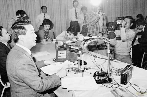 (图十七 1980年3月20日晚,台湾“新闻局长”宋楚瑜对美联社的“不实”报导提出抗议,宣布取消美联社在台湾的采访权。)
