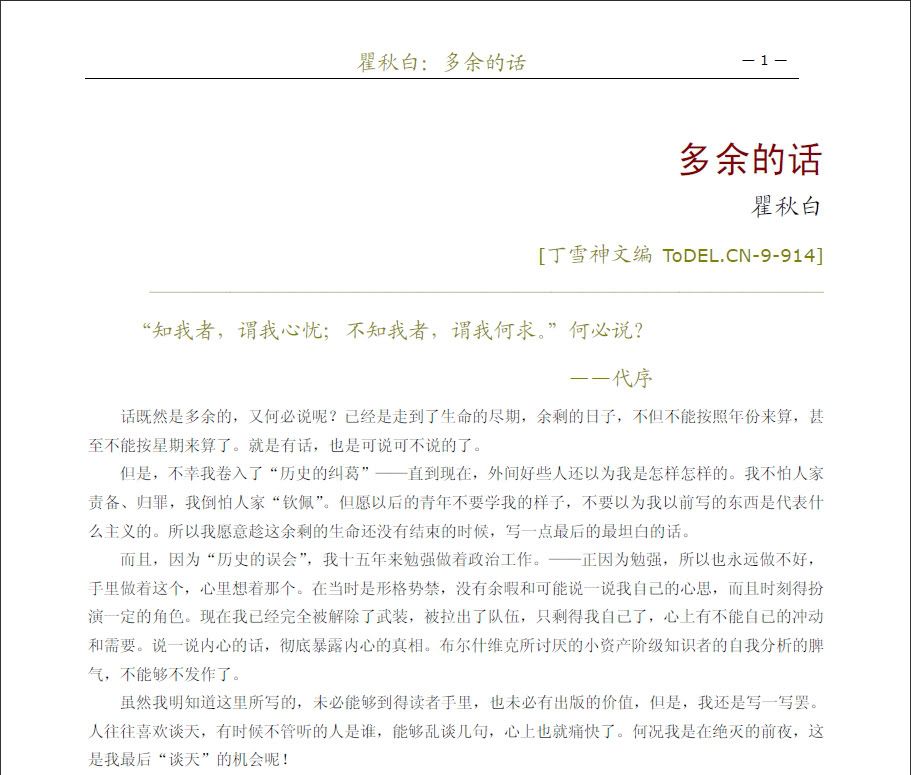 果然,他最后领悟到自己是个革命队伍里“多余的人”,说的话也是多余的话