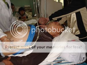 图片:禹城拆迁户张涛被拆迁人员打伤,正在医院急救(志愿者提供)