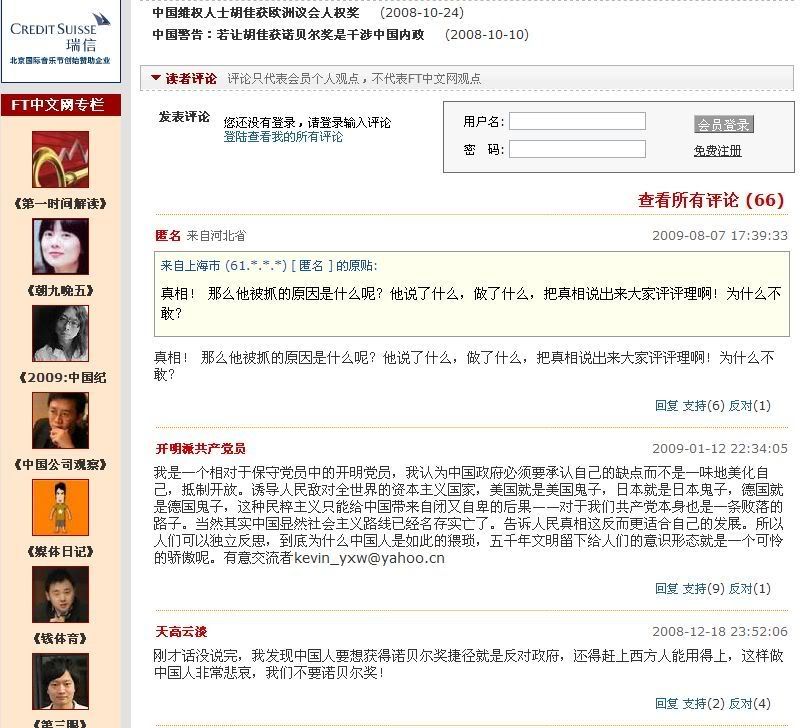 原帖由 hlrzhang 于 2009-10-7 20:46 发表 中国外交部发言人刘建超说,诺贝尔奖评审机构,在人选方面应该做出正确的选择,“不要做伤害中国人民感情的事情。” 真是可笑!中国政府心虚了!