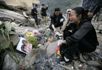 一位母亲哭祭在地震中遇难的孩子