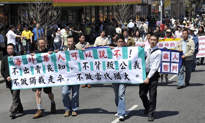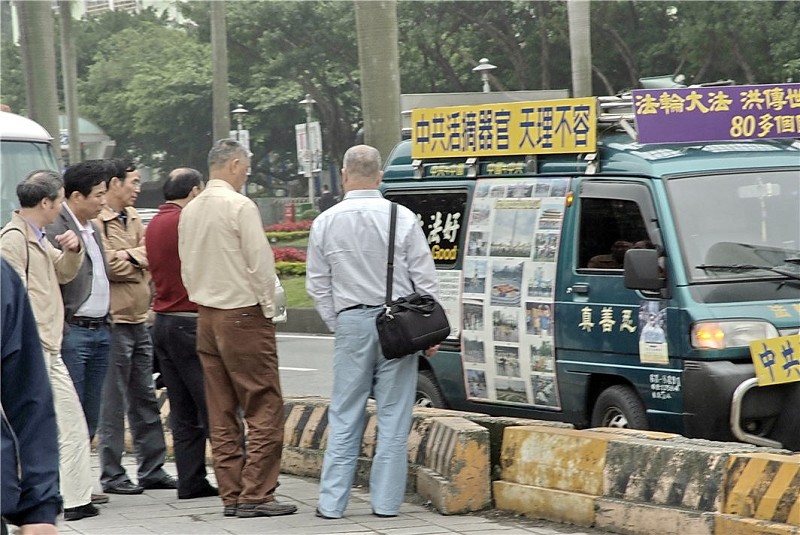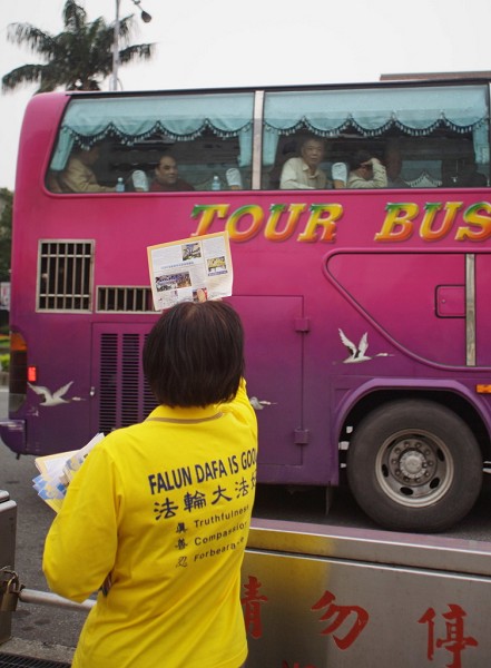 法轮分子就是有韧劲,抓住来台湾观光的大陆游客“讲真相”。