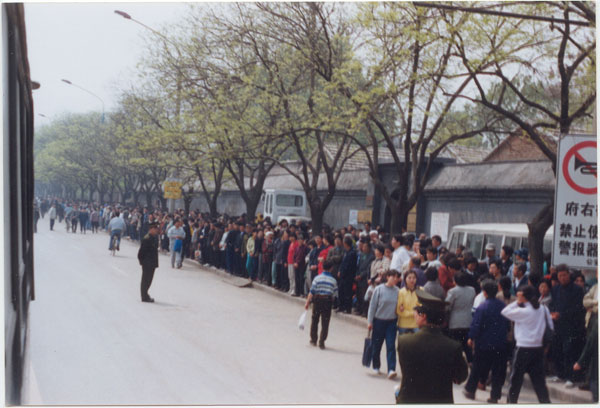 1999.4.25.  法轮功上万人“静坐”围攻中南海(中共中央信访办,法轮分子称“上访,找个说法”)。