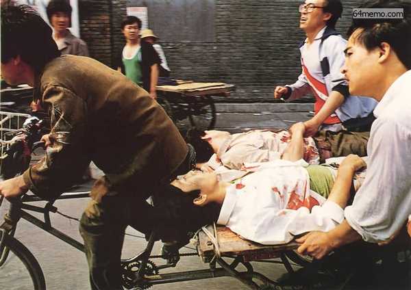 据香港《明报》所称,这张相片是刘香成在1989年6月4日当天,在北京街道上拍摄的相片,显示遭戒严部队枪伤的男子被送往医院的情景,该照片曾在全球无数媒体上刊登。