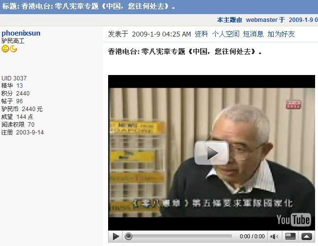 節目采訪了蔡詠梅、程翔、野渡等人,比較客觀地介紹了零八憲章的來龍去脈並對它的意義作了積極評價。作為香港最大最有影響力的電視台,翡翠台這次播出零八憲章的節目勢必擴大憲章的影響力。 (博訊 boxun.com)