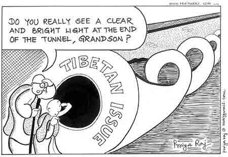 達賴喇嘛過去已經幫忙消解了中國非法佔領圖博的不名譽,而現在,在特殊大會後,他還是繼續當圖博立場的主導人。幾天前,他明顯地變得悲觀了,然而他表示至少還是對中國人民有信心。必須問的是,他是否對於三月事件發生後,普通中國老百姓對於博彌的敵意大增是否有所瞭解。在1990年代,他習慣性提起鄧小平為他的老朋友。如果鄧知道他的說法,他一定會對於他的一廂情願感到有趣(或困惑)。整個時有時無的接觸商談過程之中,達賴喇嘛似乎一直都在跟幻想中的友人說話,而大部份的人早在五歲時就已經停止這樣做了。