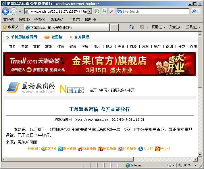 然后,各大网站纷纷转载,恩施新闻网在晚上7点半又发布